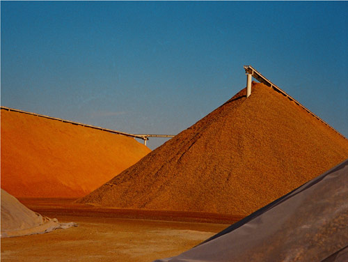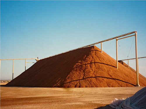 Grain Offerings are the formation of pure architectonic shapes by the controlled release of granular materials to the influences of gravity. By simply dropping any granular substance like sand or grain, regular piles or mounds are formed by gravity. If the material is released from a single point a perfect cone is formed, the slope of which is determined by the material’s characteristics. This is known as the angle of repose. By regulating the pattern of release, a variety of basic geometric shapes are formed. These shapes suggest early architectural constructions: mounds, pyramids, cones, various truncated platforms and ziggurats. They all evolved by a simple piling up of material. The word “stupa” means to pile up. Stupas are now highly symbolic ritualistic sacred structures that evolved from earlier burial mounds. Still evident in parts of North America are extant examples of a once prevalent mound building culture. In Buddhist practice a “Grain Offering” ritual is performed. The universe is symbolically represented as a grain mandala to be offered in a process of purification and evolution of consciousness.